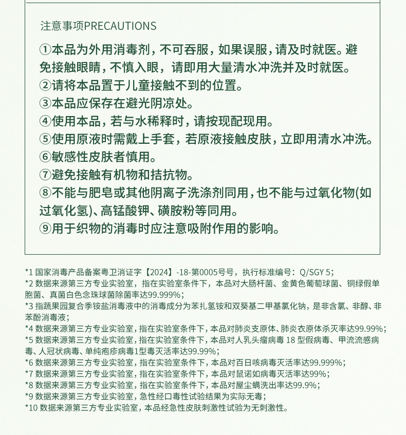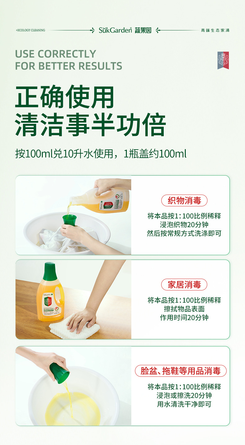 蔬果园消毒液衣物专业家用洗衣拖地儿童室用宠物居家环境消毒剂水