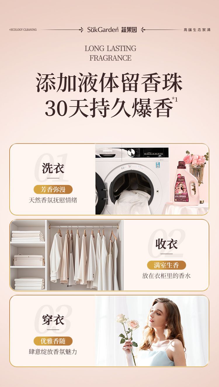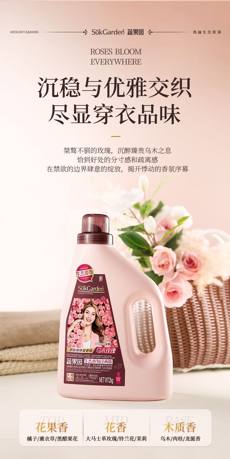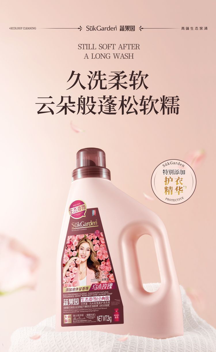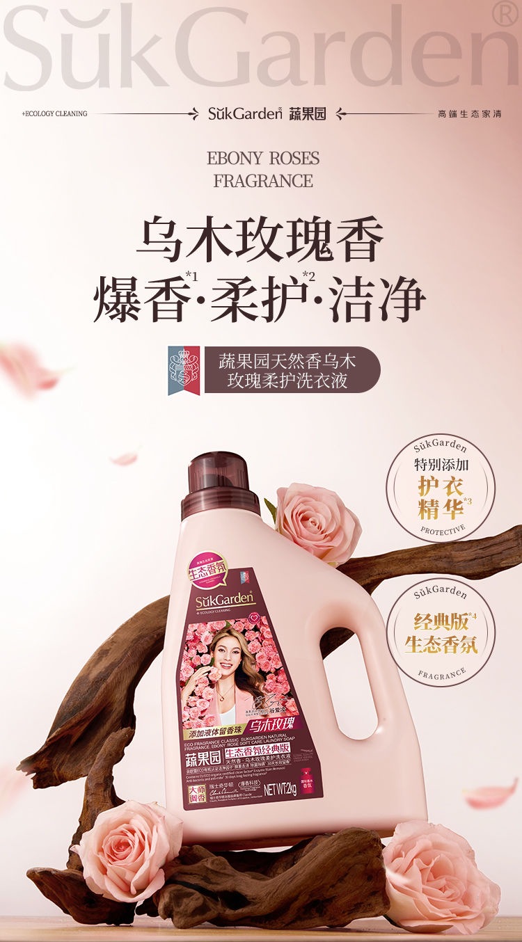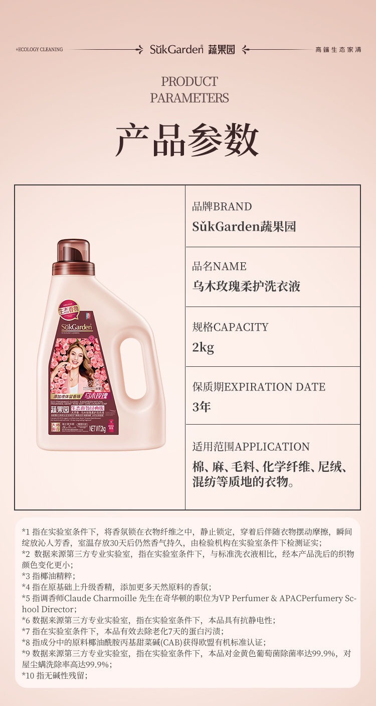 蔬果园乌木玫瑰洗衣液10斤香水除菌除螨持久留香去污能力强