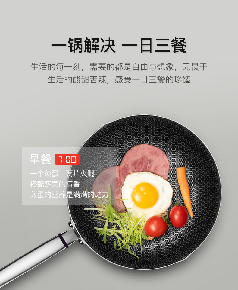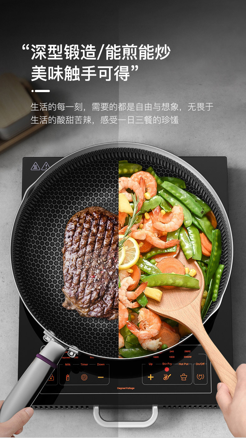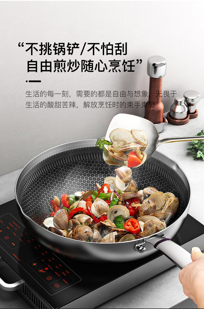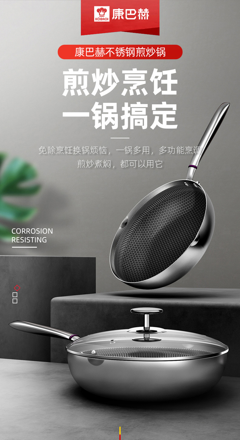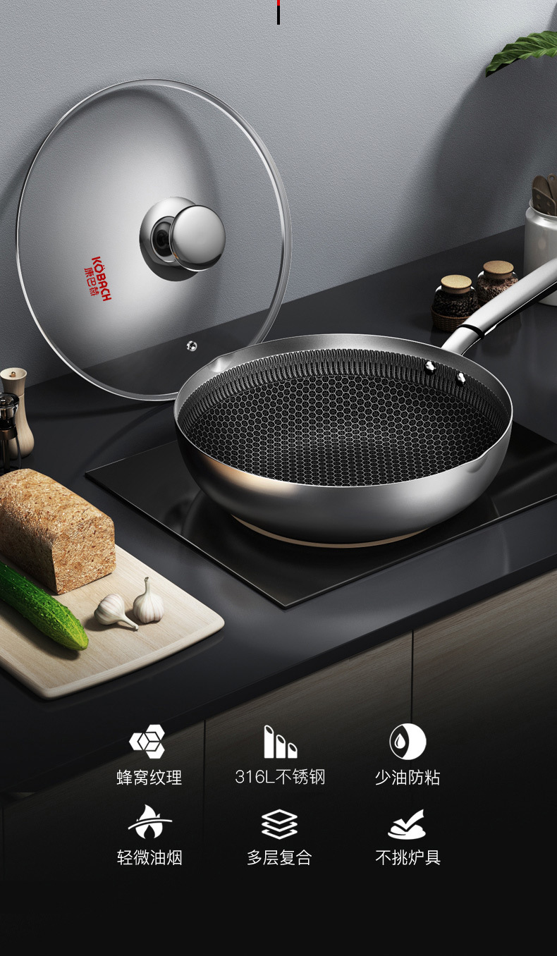 (可定制)康巴赫锅防粘316L不锈钢炒锅家用大容量煎蛋一体炒菜锅