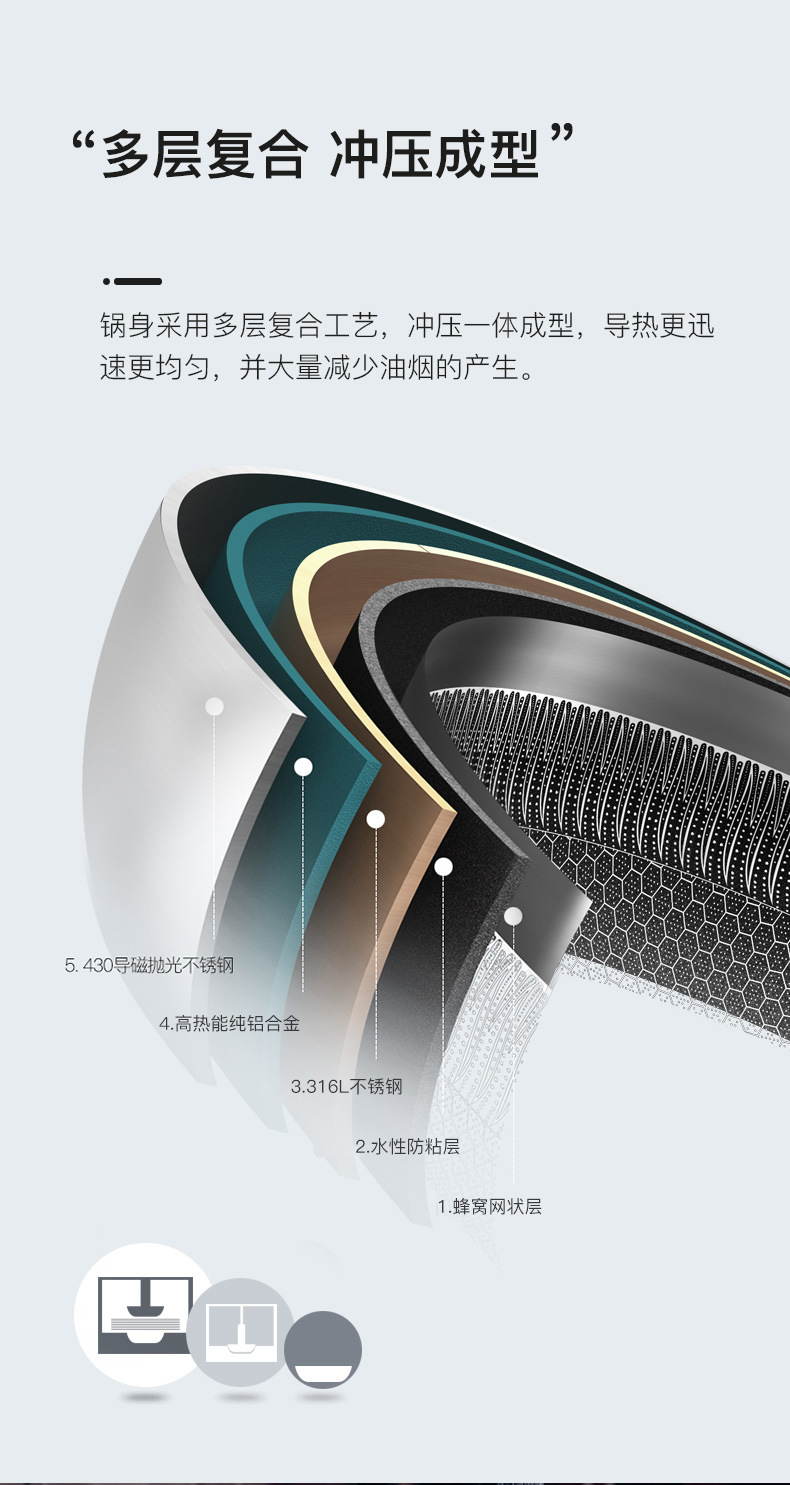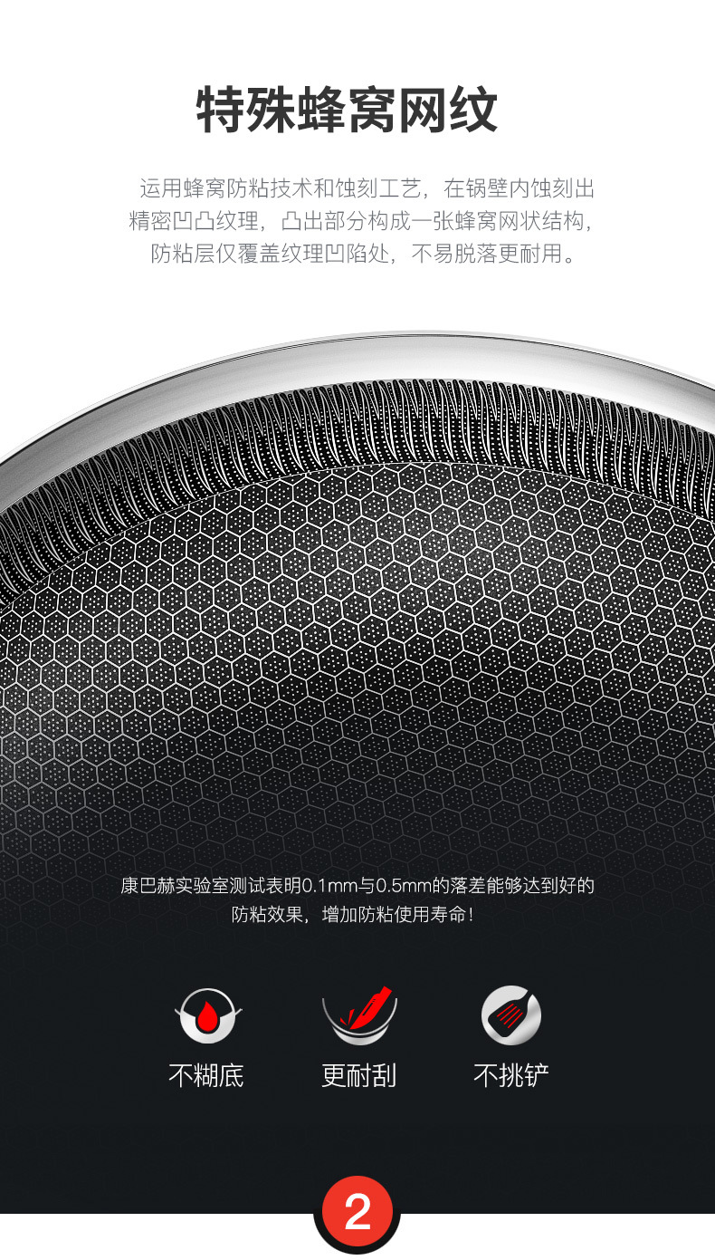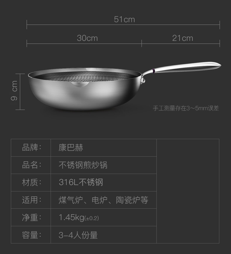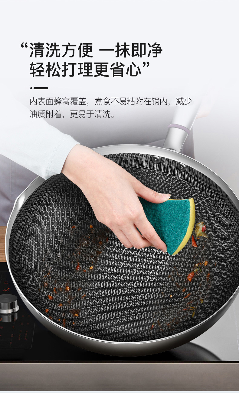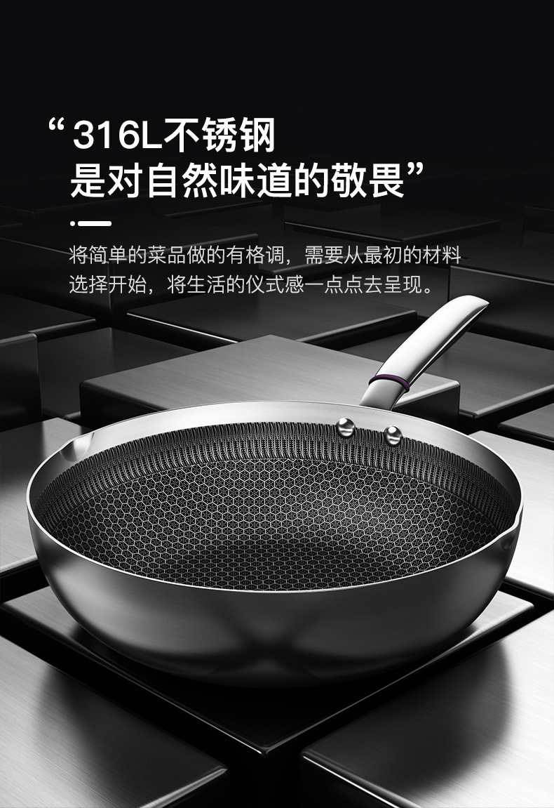 (可定制)康巴赫悦厨版316L不锈钢防粘炒锅家用大容量煎蛋炒菜锅
