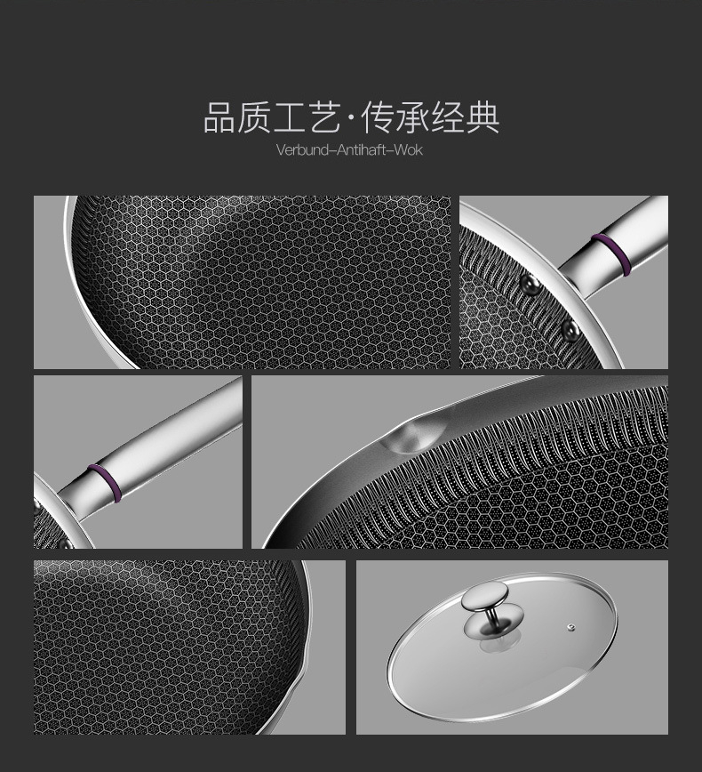 康巴赫旗舰款炒锅定制316不锈钢锅双面花纹炒锅不挑炉灶不粘锅