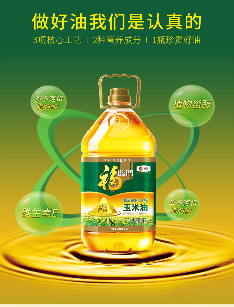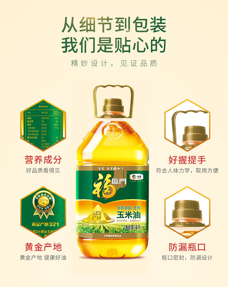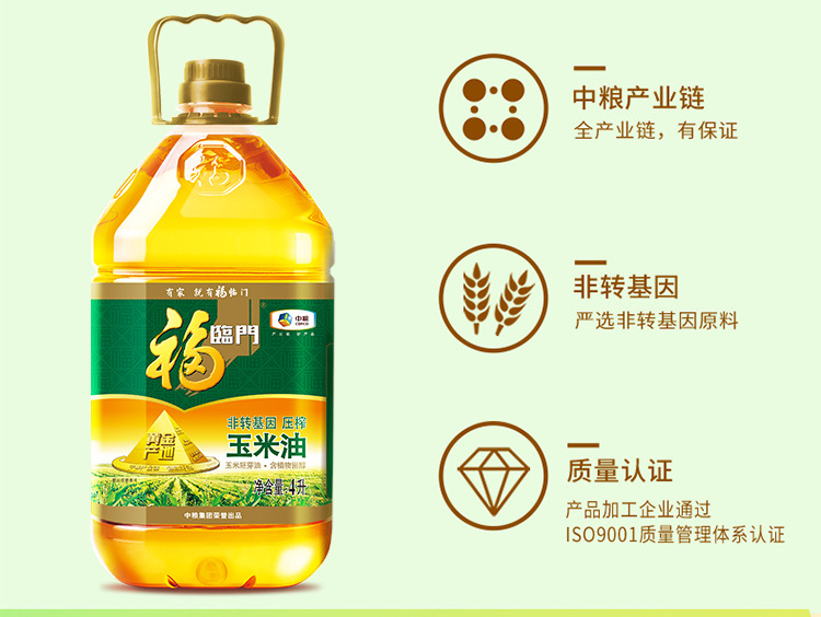 福临门玉米油4L黄金产地物理压榨玉米胚芽油桶装烘焙家食用油