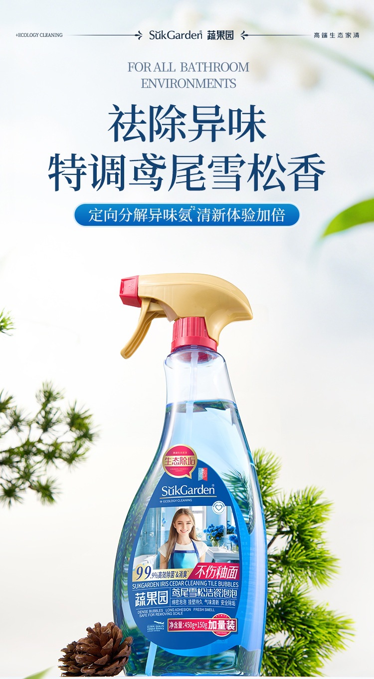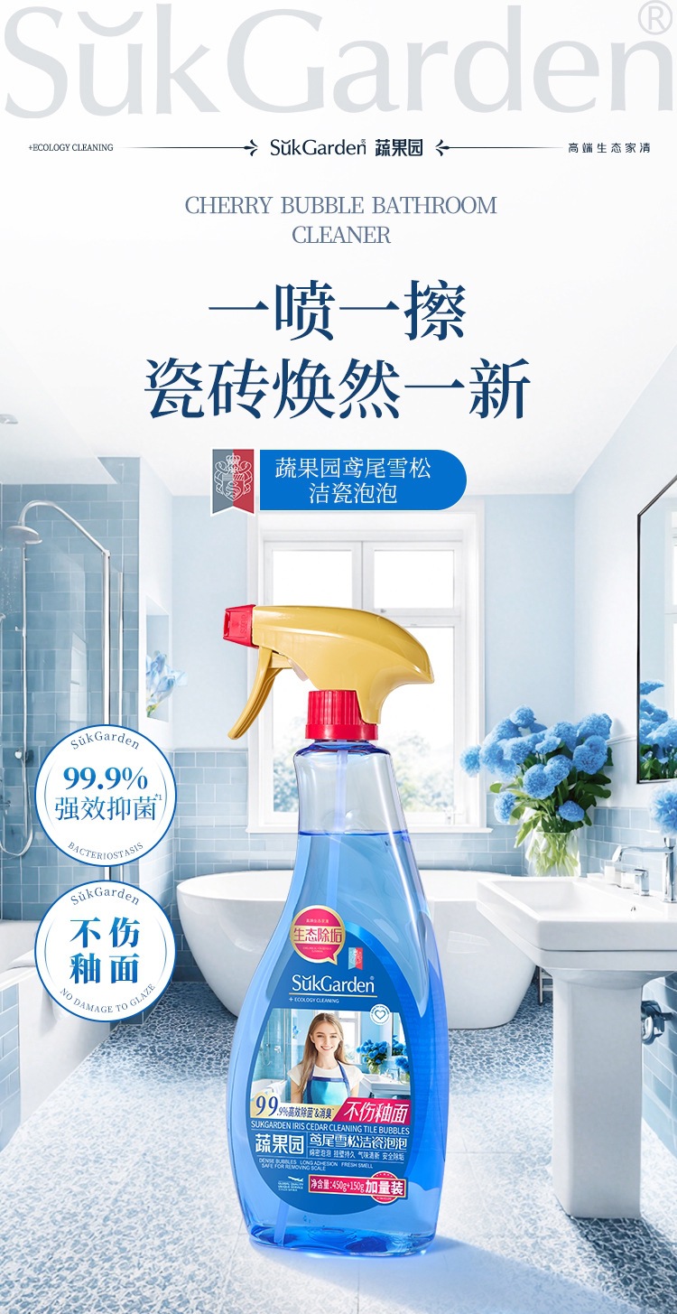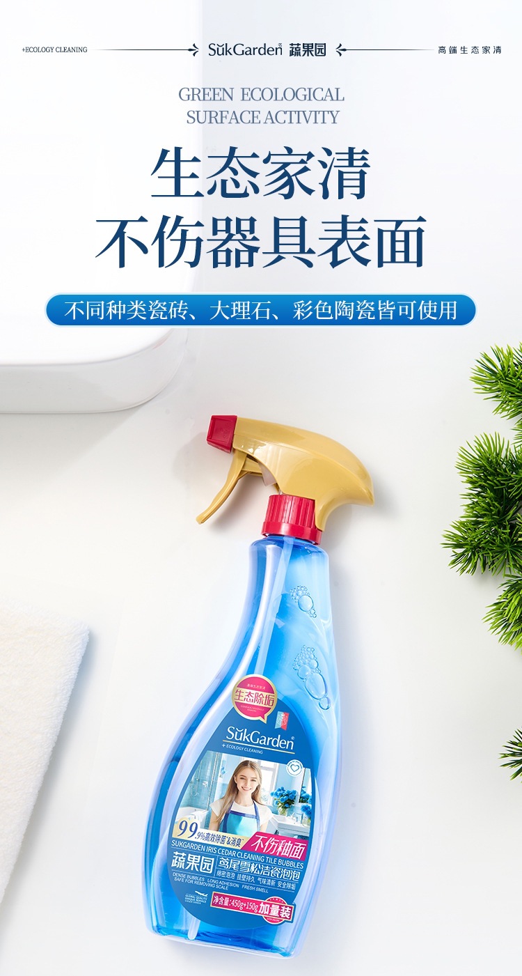 蔬果园鸢尾雪松洁瓷泡泡地砖瓷砖清洁剂增亮重污洁而亮