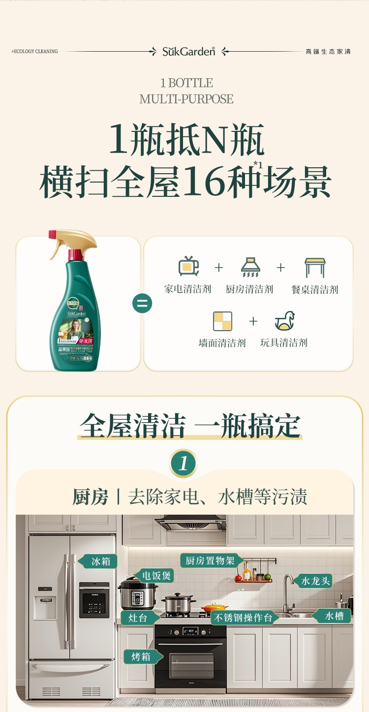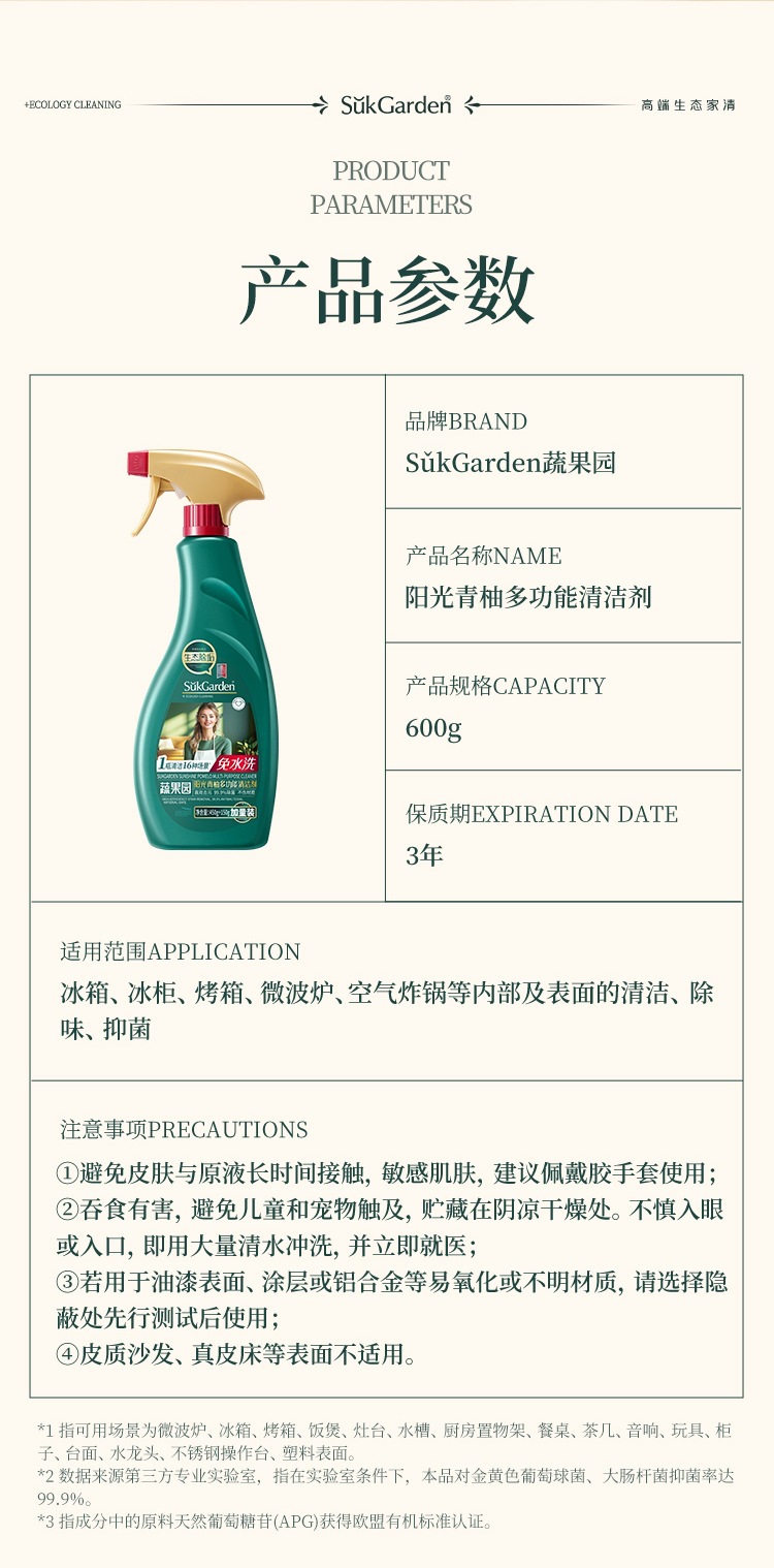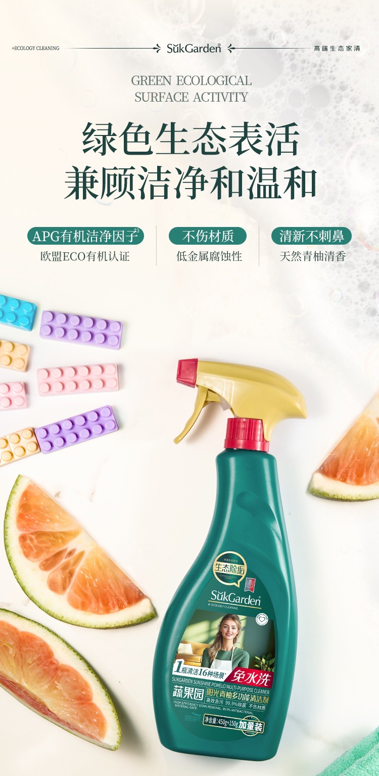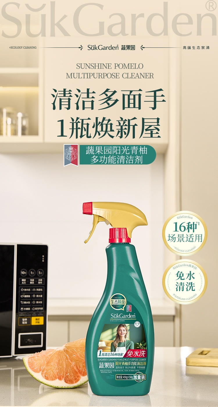 蔬果园阳光青柚多功能清洁剂锅底黑垢清洁剂万抑菌能家用污垢