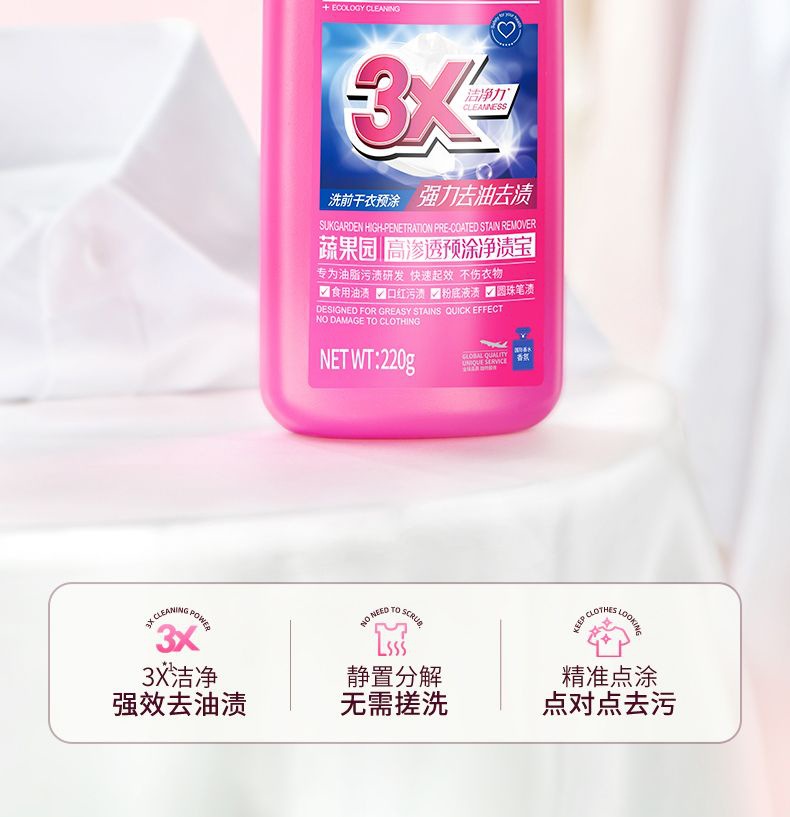 蔬果园衣物去油王去油渍油迹神器净渍宝衣服清洁去顽固污渍清洁剂