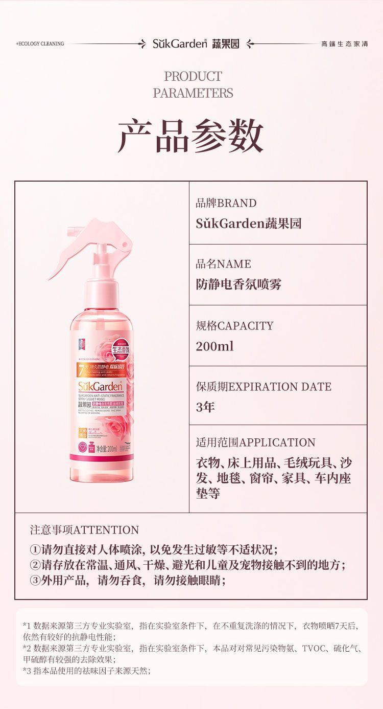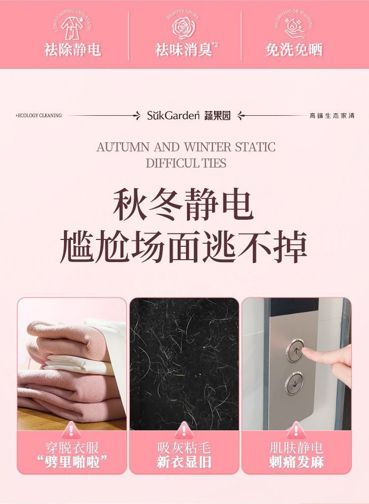 蔬果园防静电喷剂防静电衣物头发除静电柔顺剂留香持久消除静电