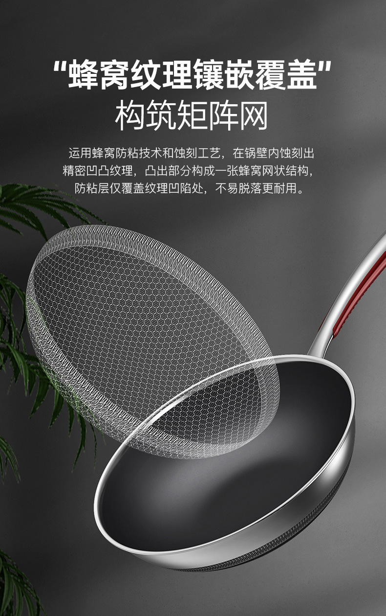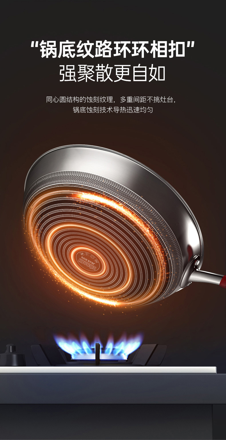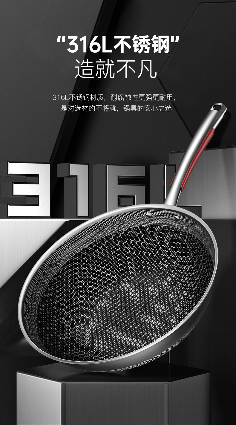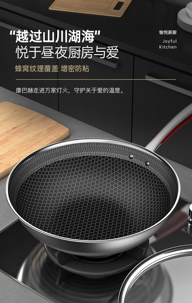 康巴赫旗舰款炒锅定制316不锈钢锅双面花纹炒锅不挑炉灶不粘锅