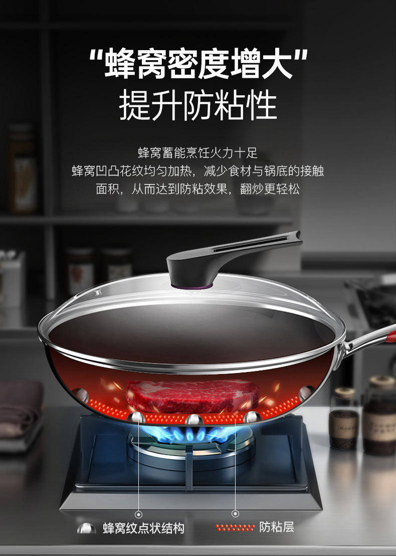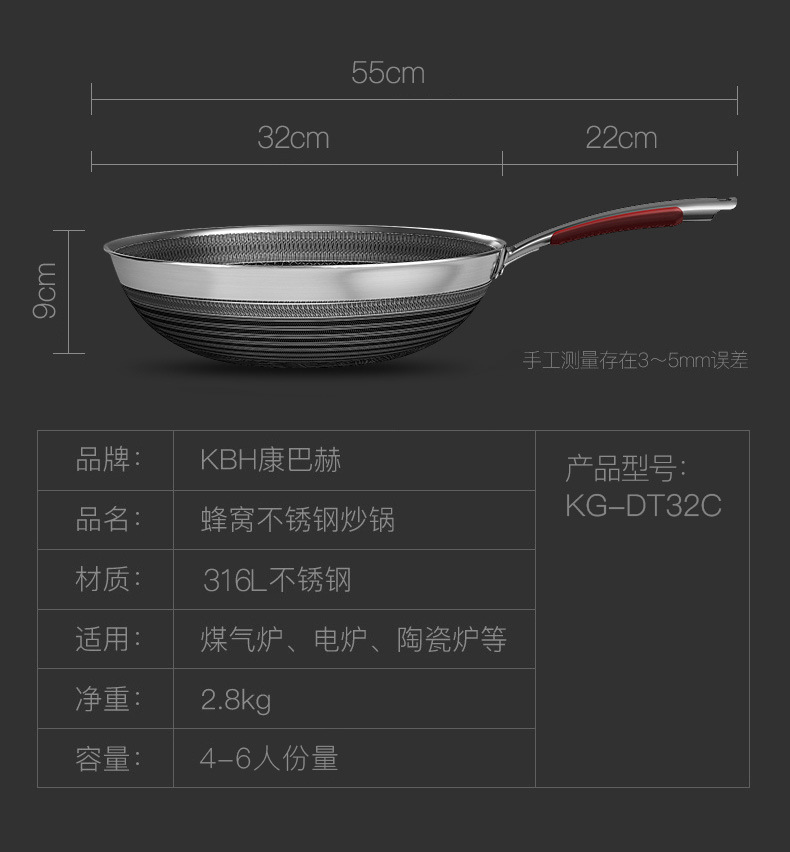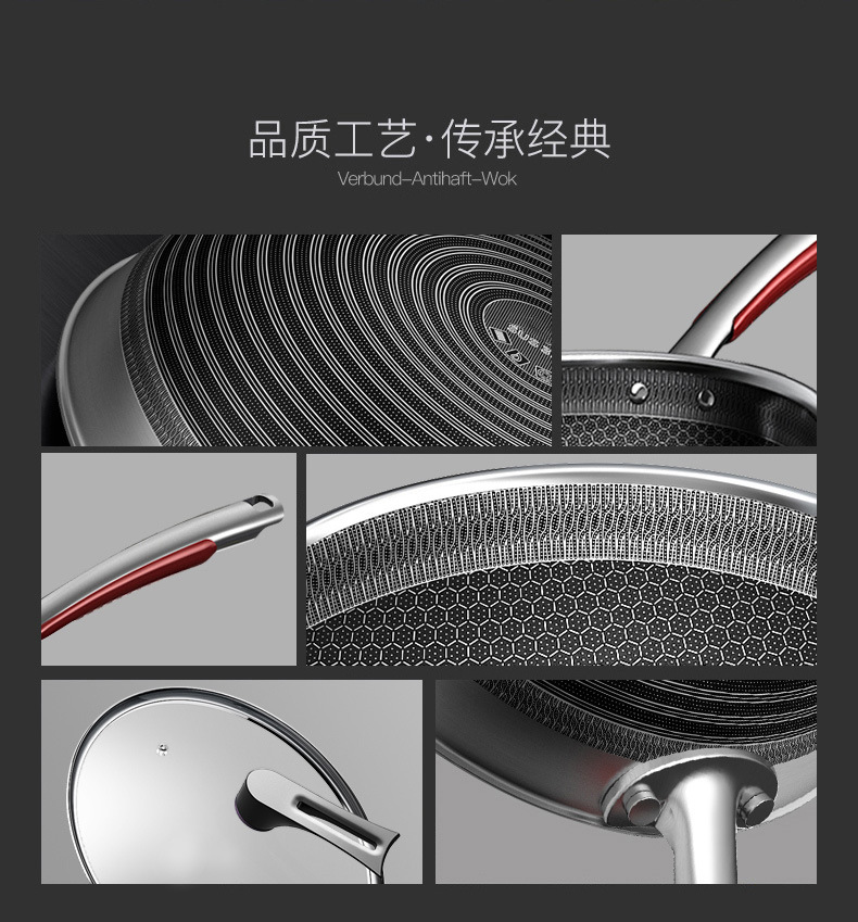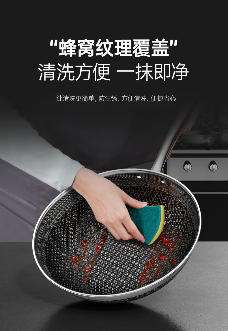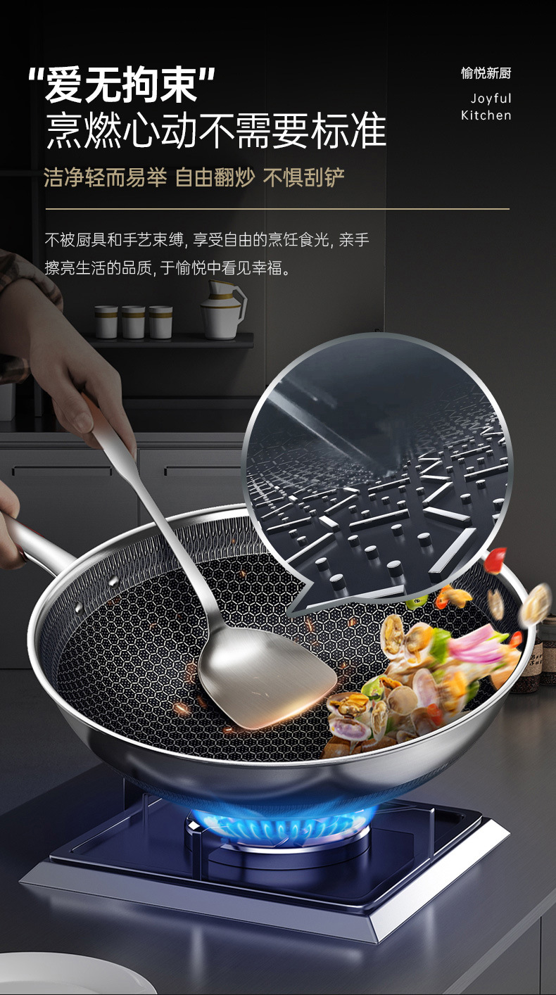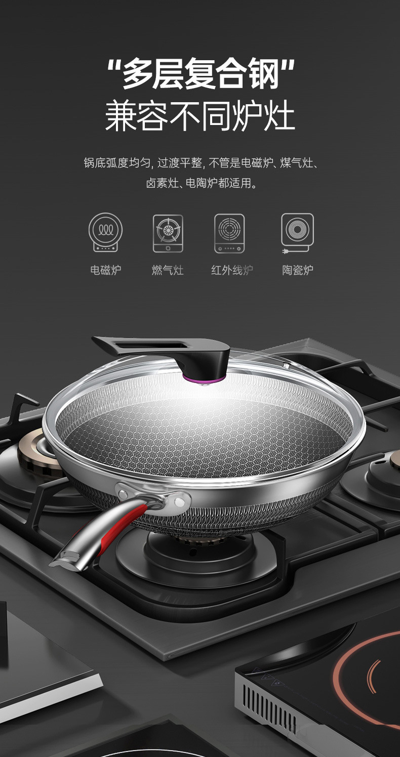 康巴赫旗舰款炒锅定制316不锈钢锅双面花纹炒锅不挑炉灶不粘锅
