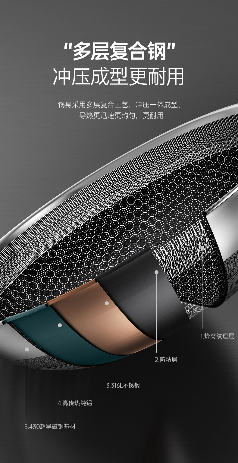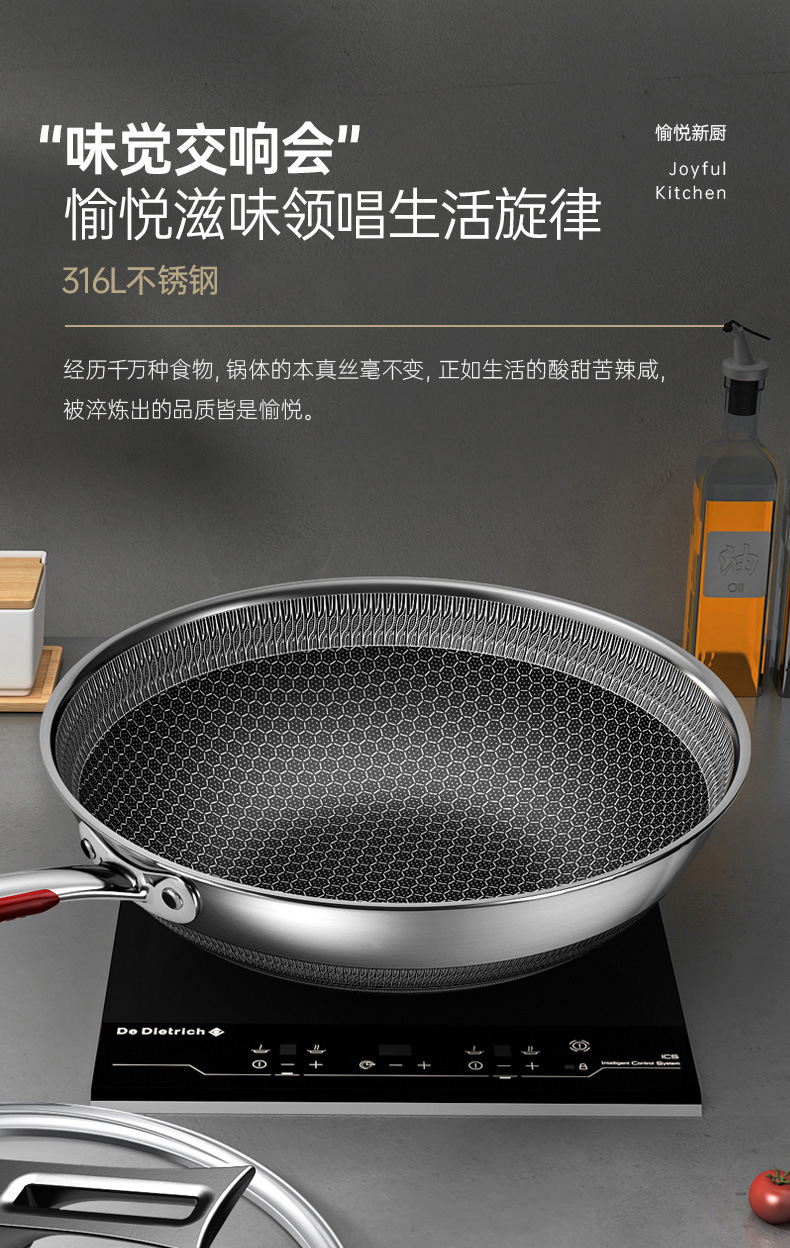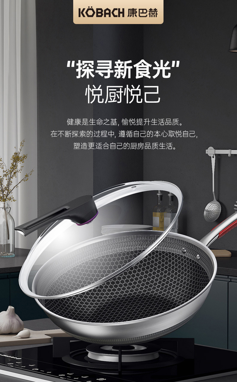 (可定制)康巴赫悦厨版316L不锈钢防粘炒锅家用大容量煎蛋炒菜锅