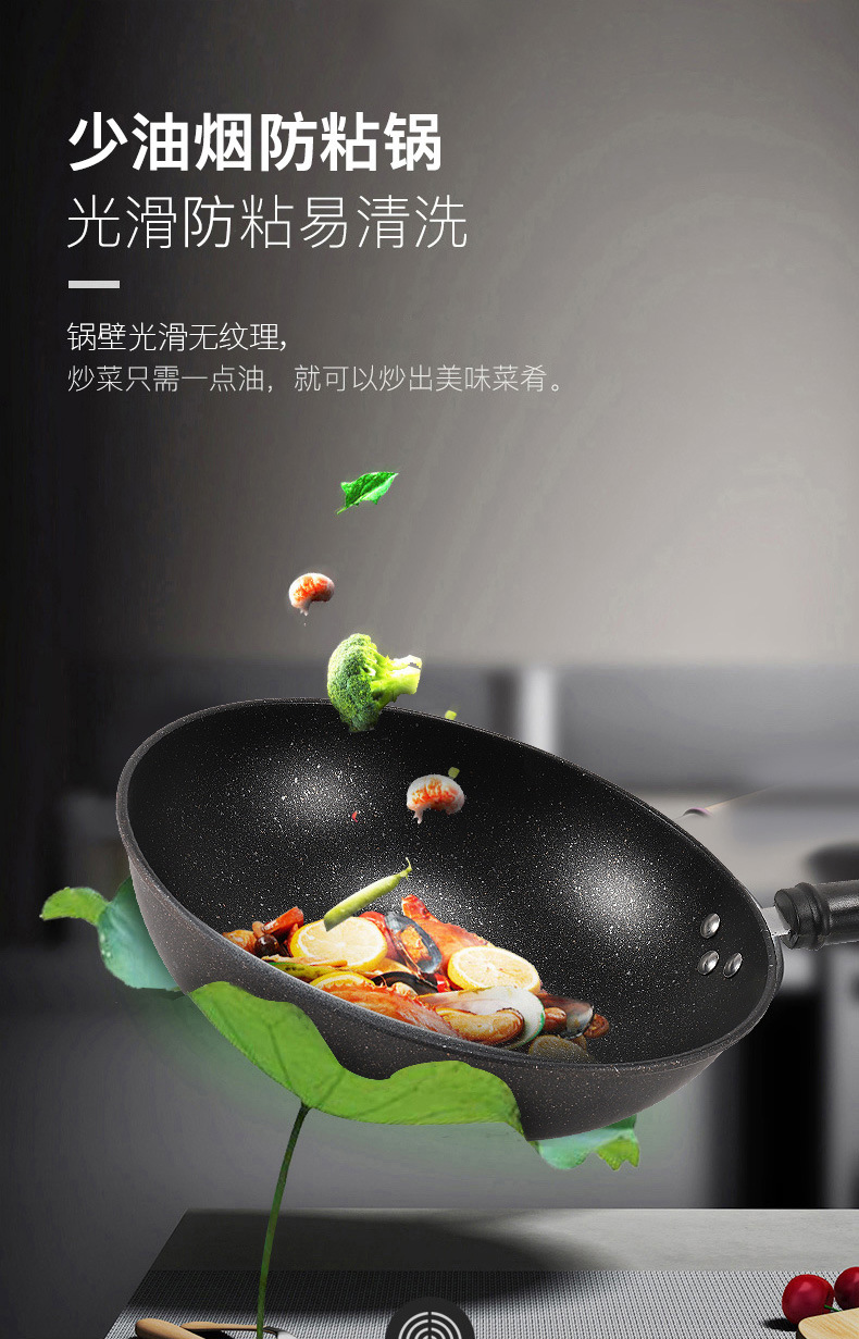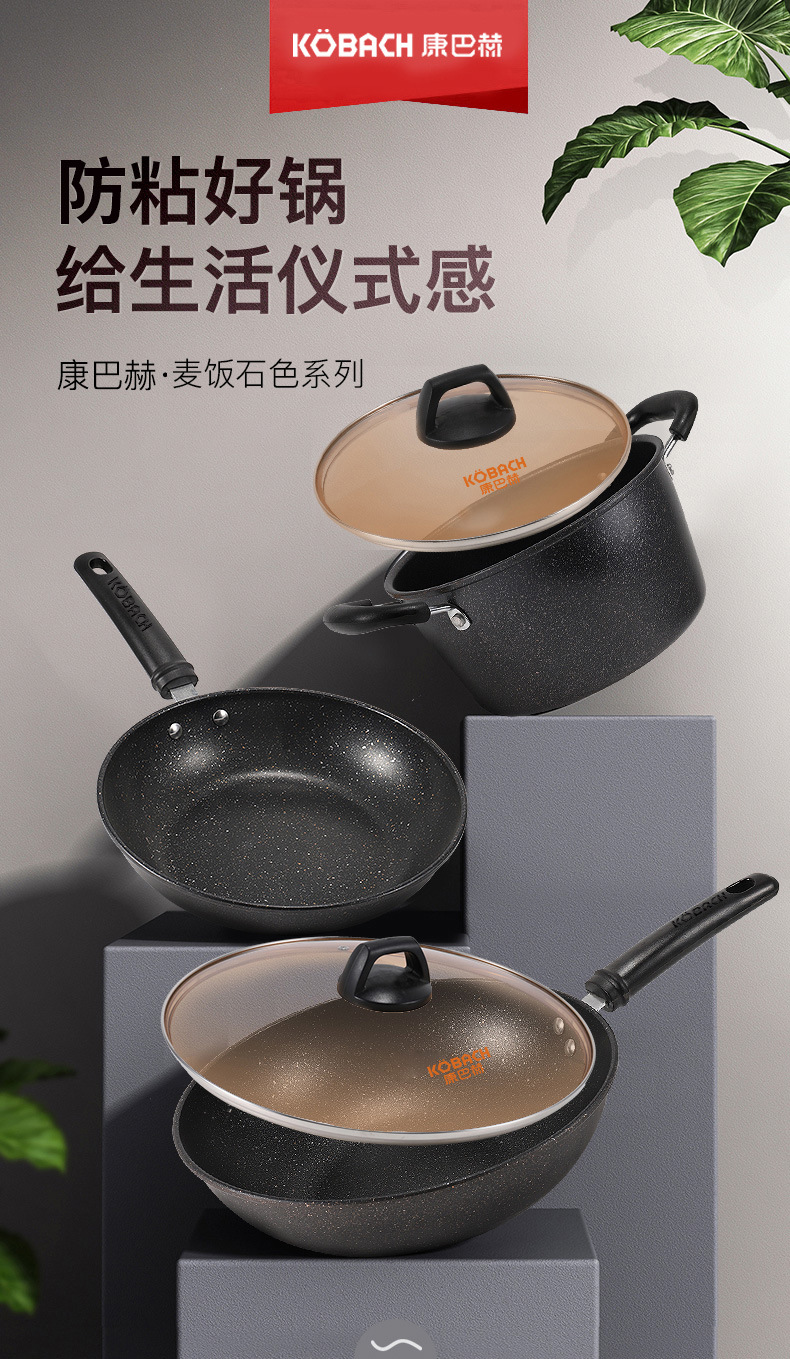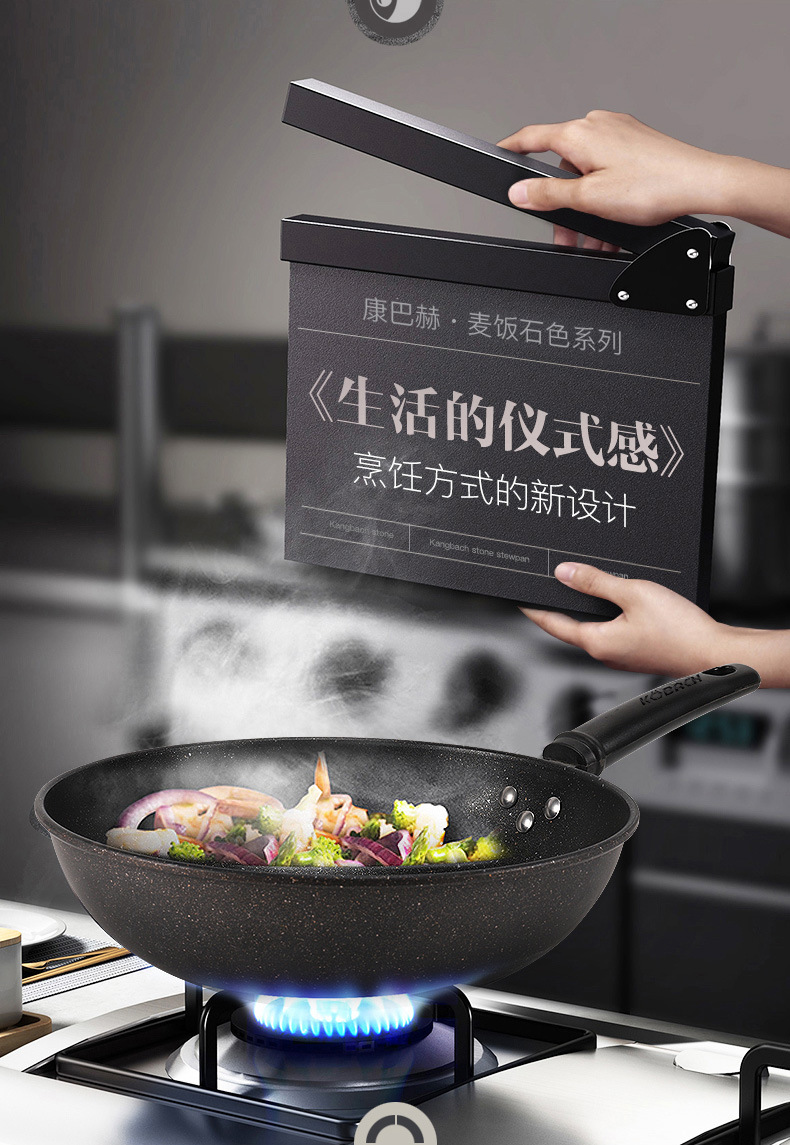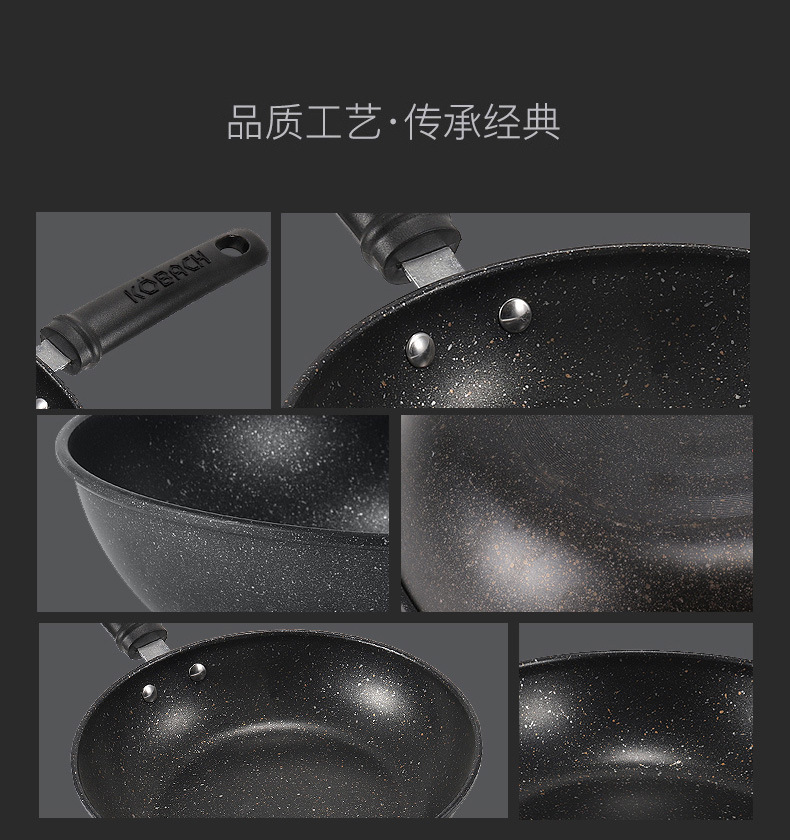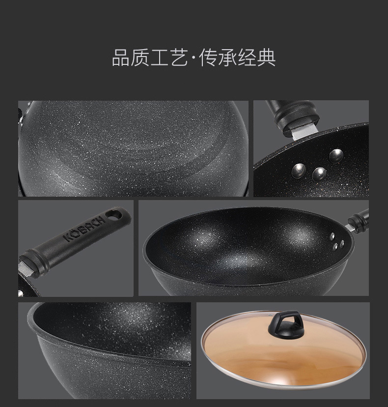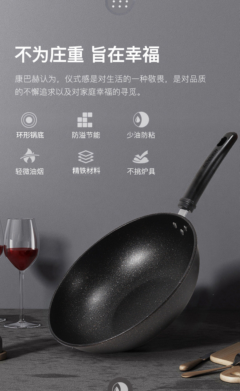 - 康巴赫旗舰款炒锅定制316不锈钢锅双面花纹炒锅不挑炉灶不粘锅