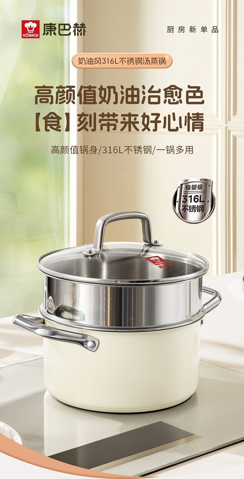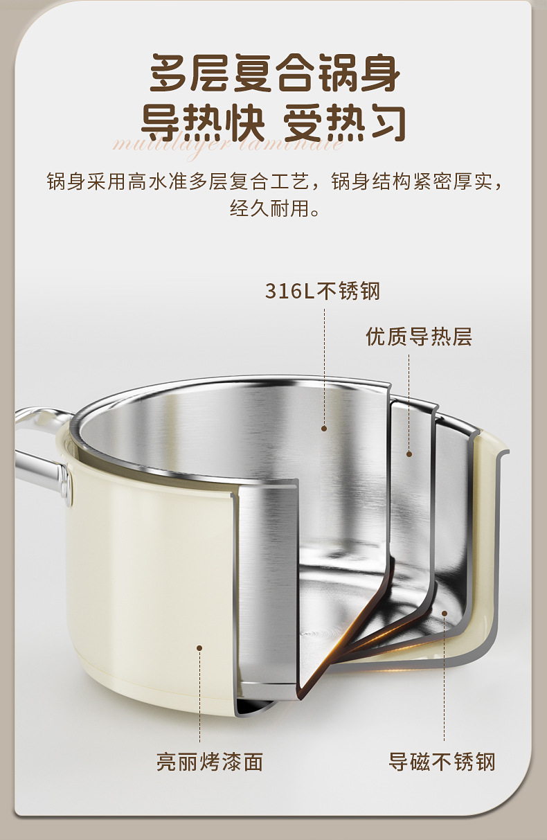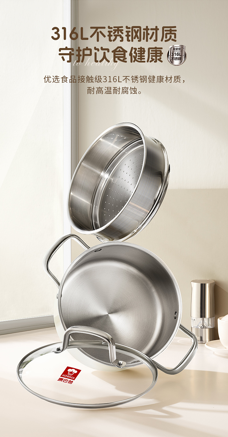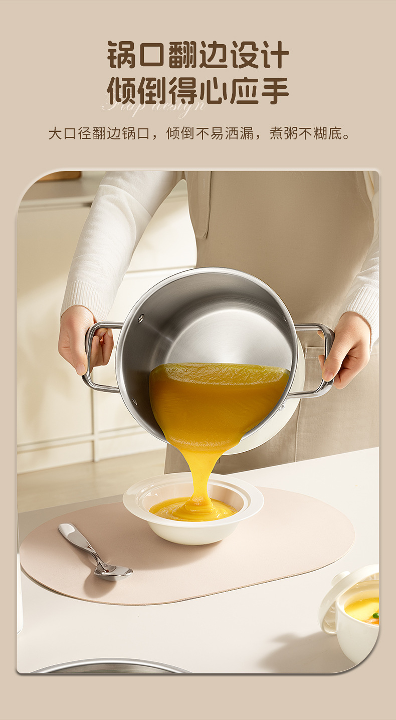 - (可定制)康巴赫奶锅五代防粘辅食抗菌不锈钢奶锅家用宝宝辅食锅