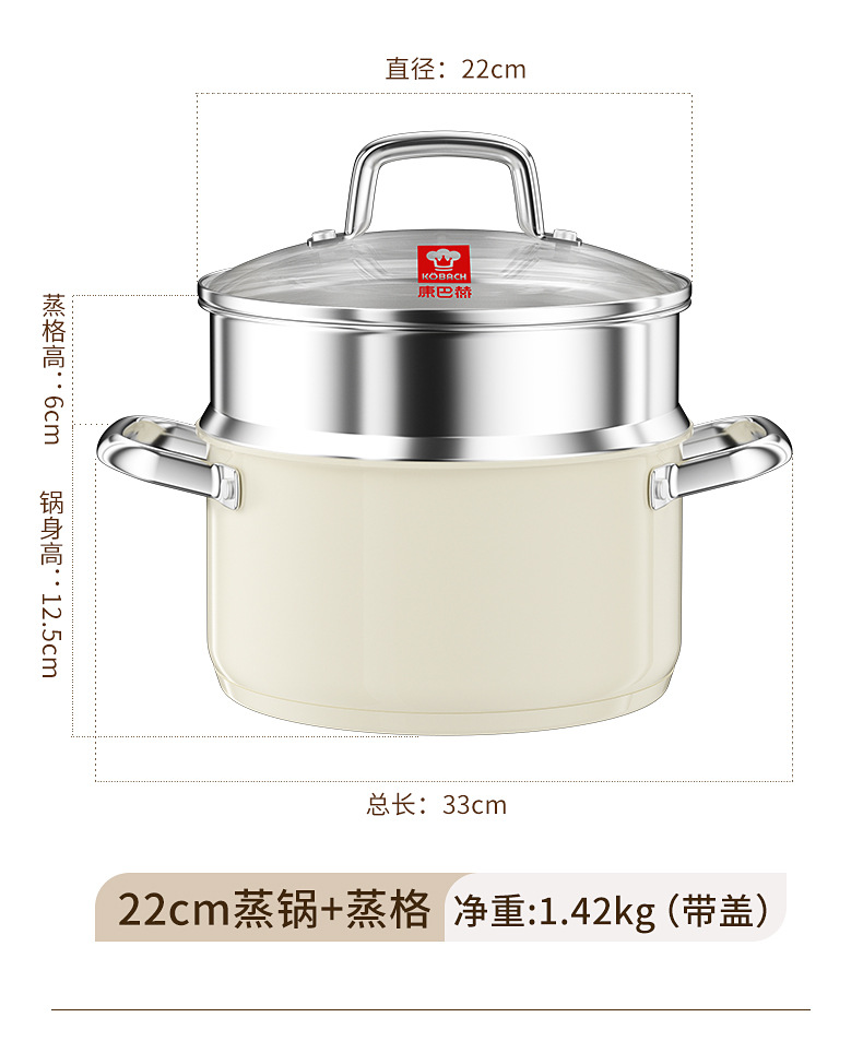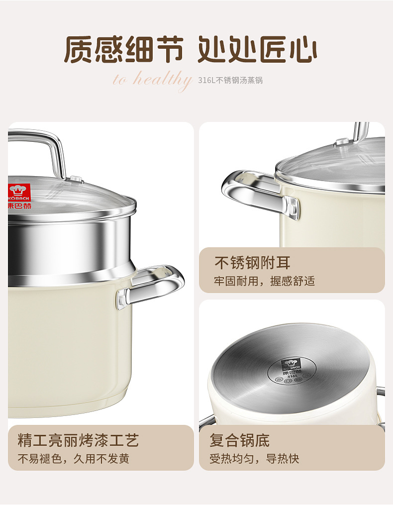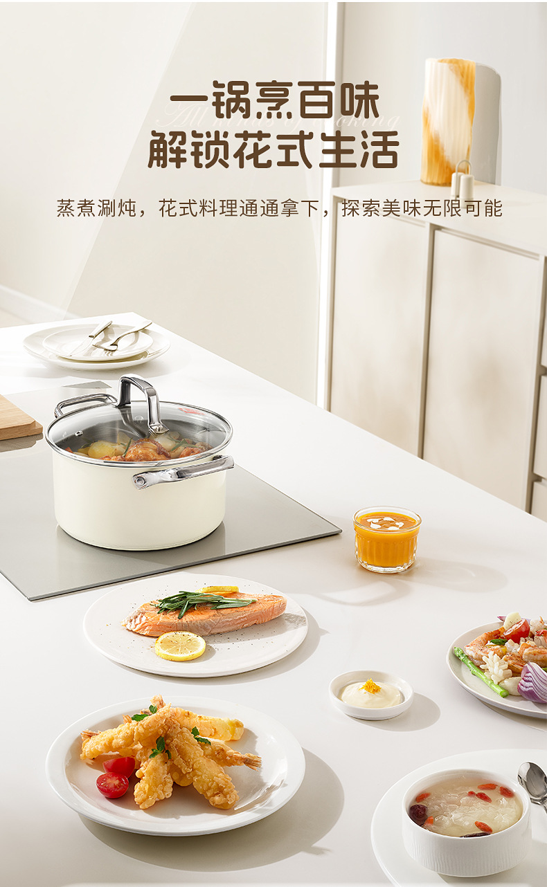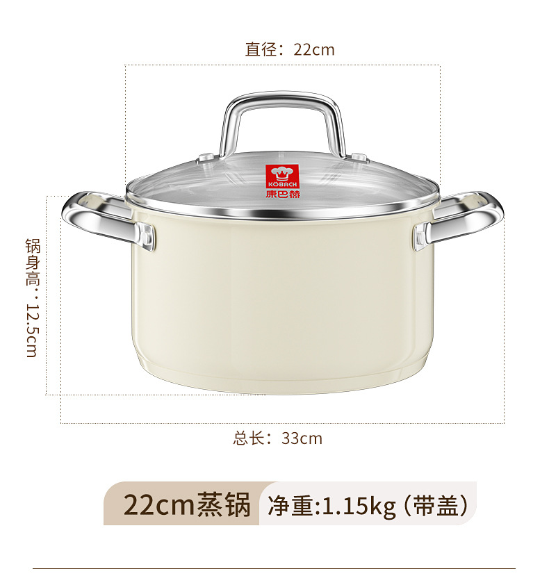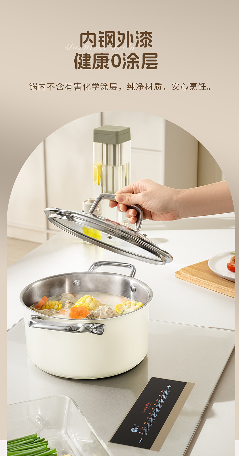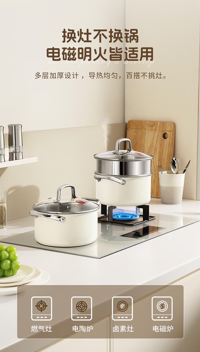 - (可定制)康巴赫奶锅五代防粘辅食抗菌不锈钢奶锅家用宝宝辅食锅