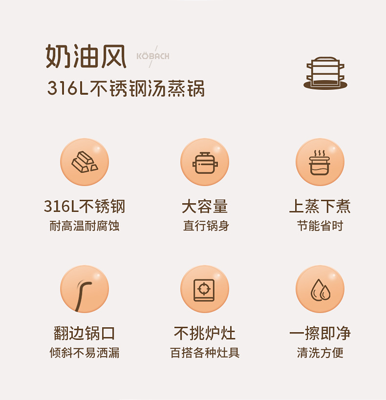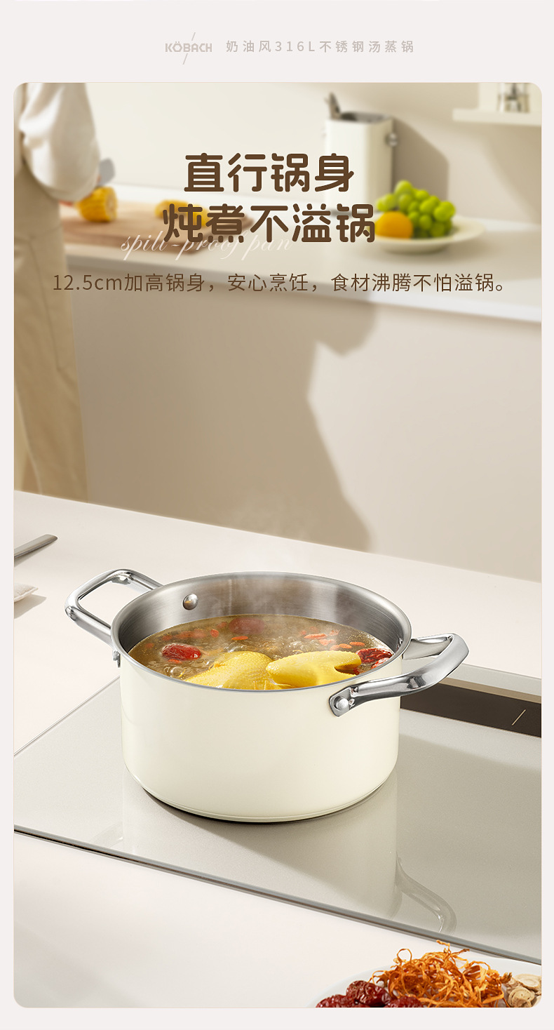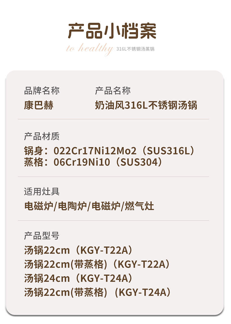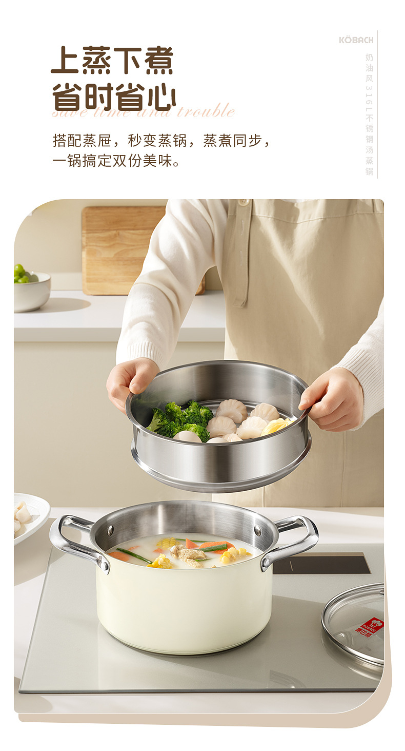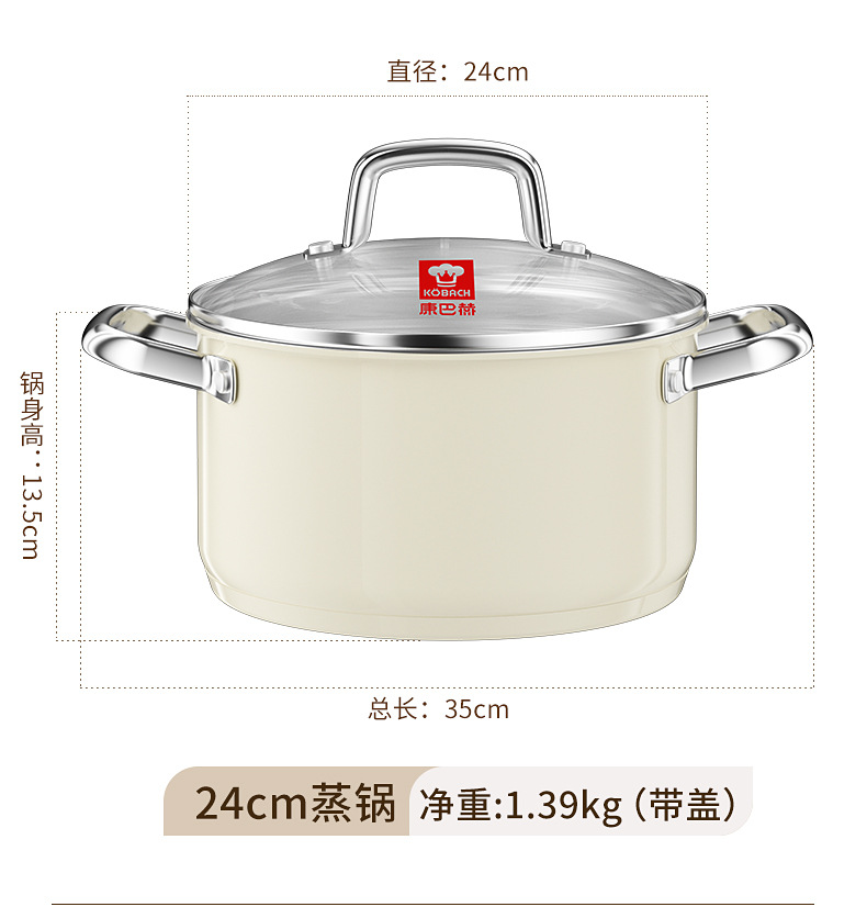 - (可定制)康巴赫奶锅五代防粘辅食抗菌不锈钢奶锅家用宝宝辅食锅