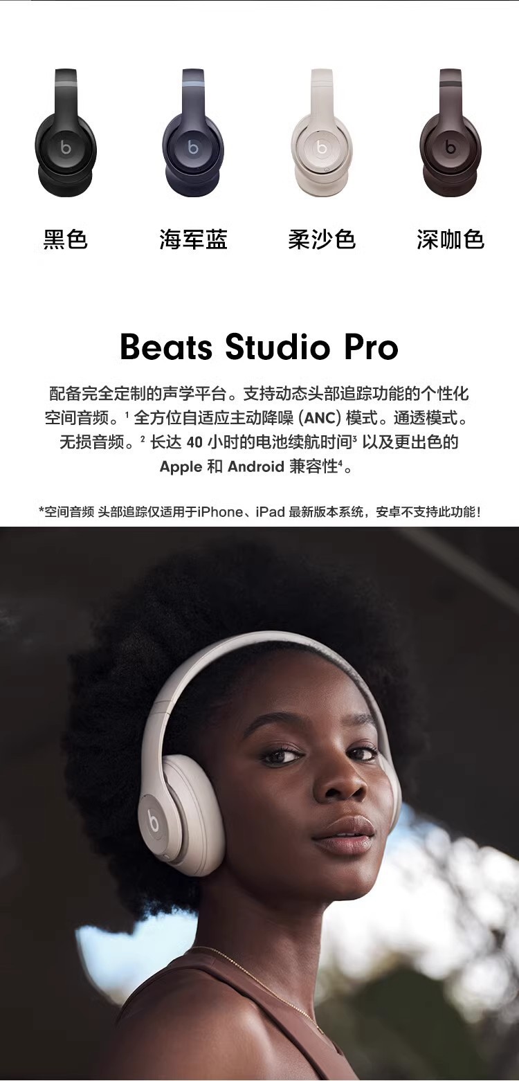 Beats Studio Pro魔音头戴式无线蓝牙降噪耳机录音师运动耳麦适用