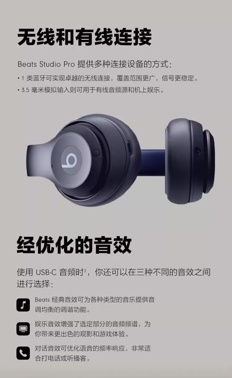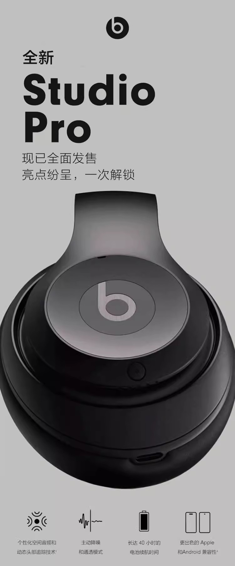 Beats Studio Pro魔音头戴式无线蓝牙降噪耳机录音师运动耳麦适用
