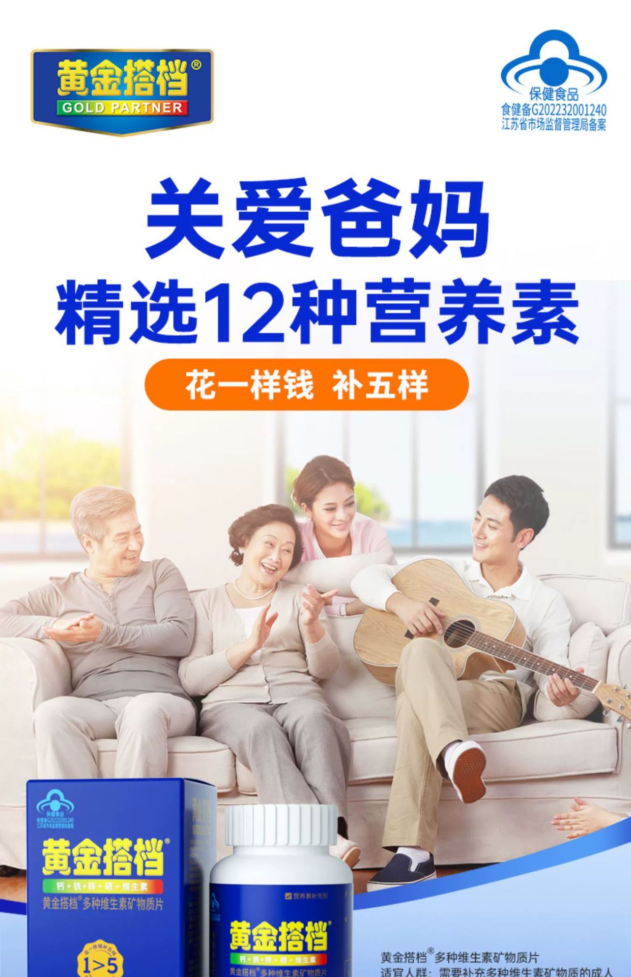 黄金搭档多种维生素矿物质片黄金破壁灵芝孢子粉胶囊线上礼盒批