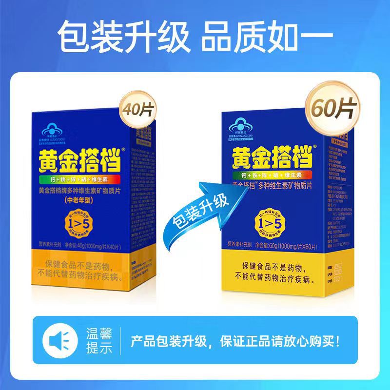 黄金搭档男士中老年补充多种维生素矿物钙铁锌硒复合型60片装