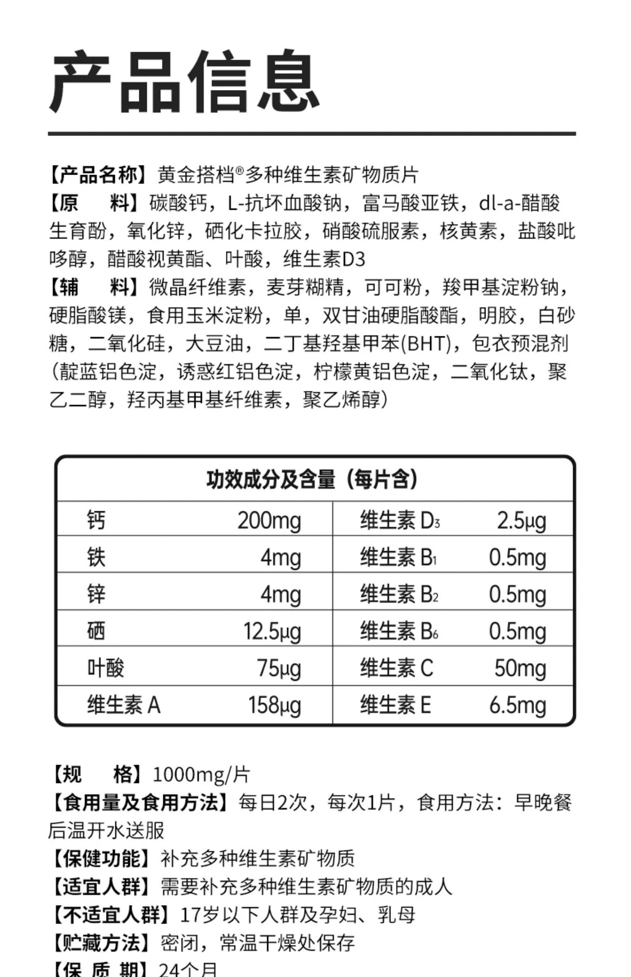 黄金搭档女士中老年补充多种维生素矿物钙铁锌硒复合型60片装