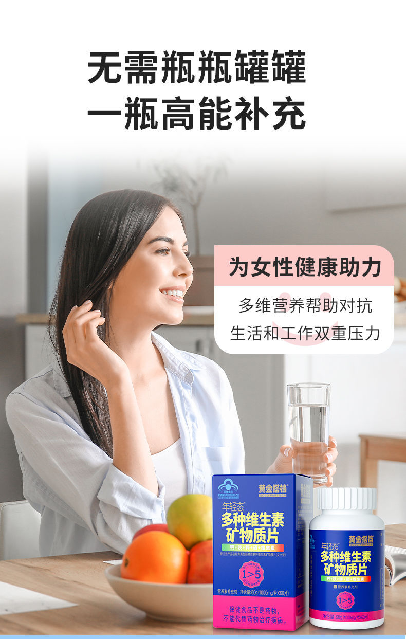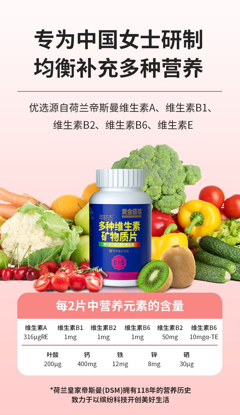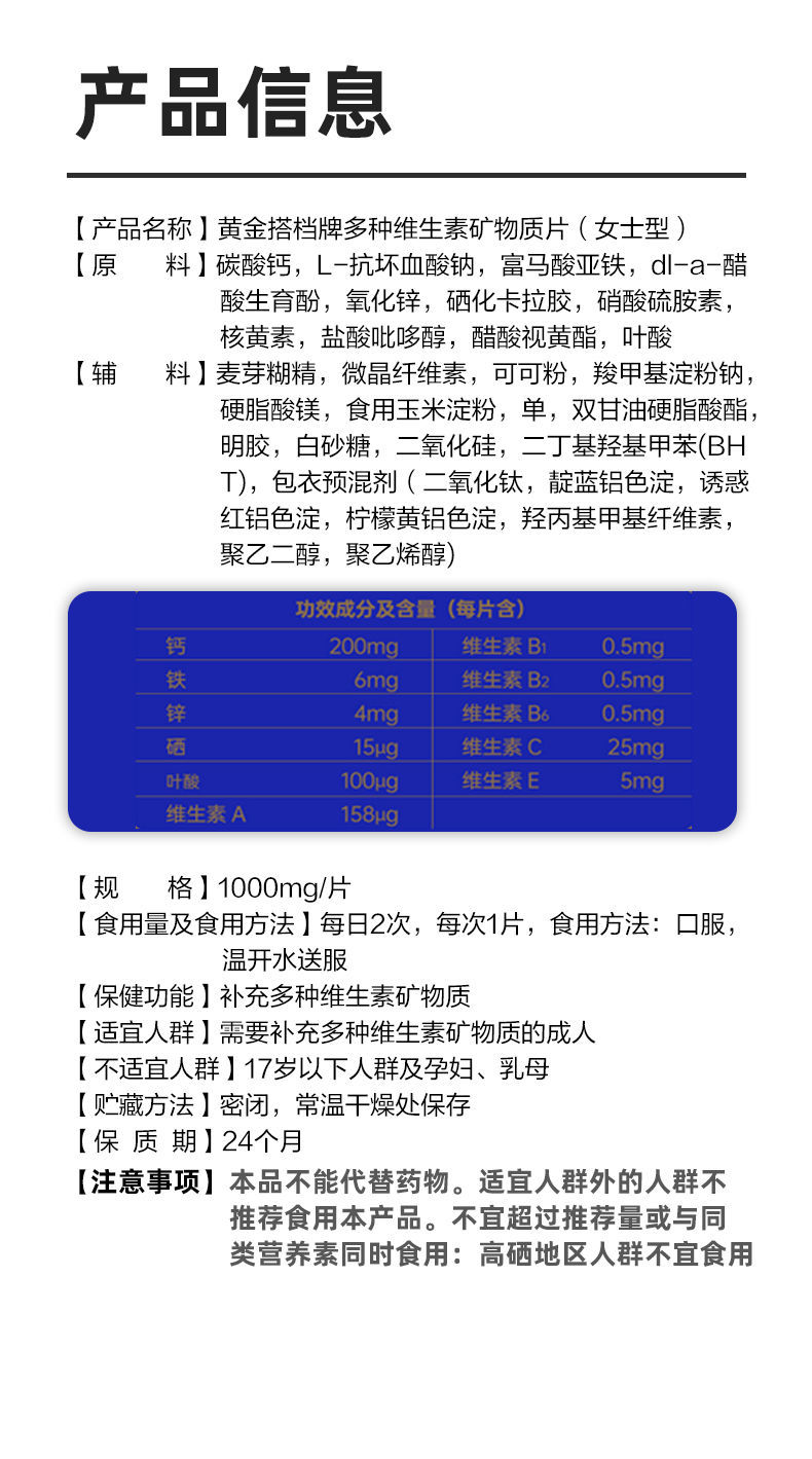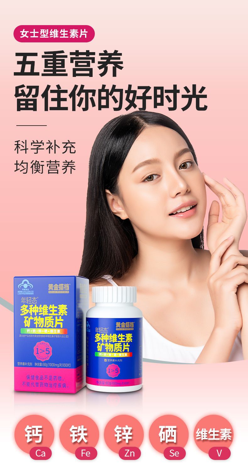 黄金搭档女士中老年补充多种维生素矿物钙铁锌硒复合型60片装