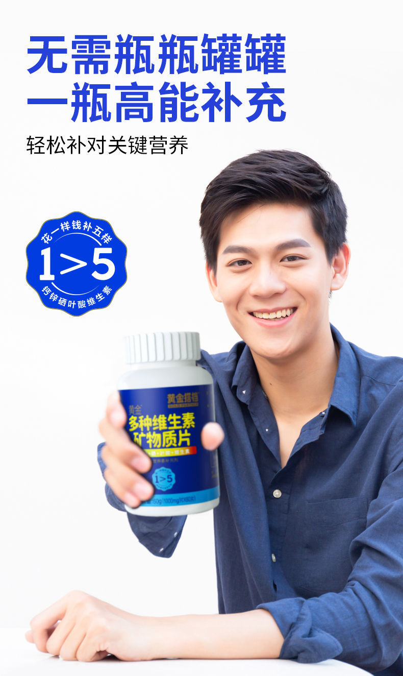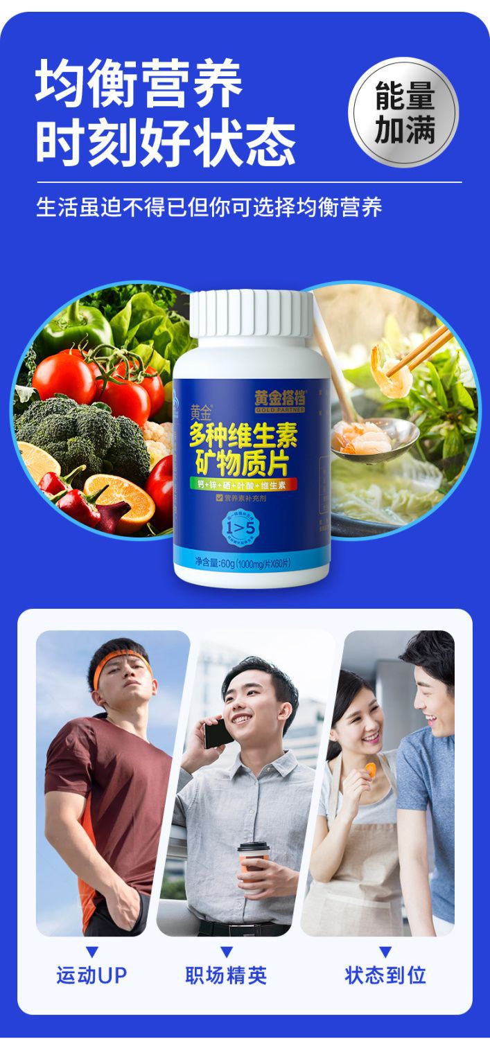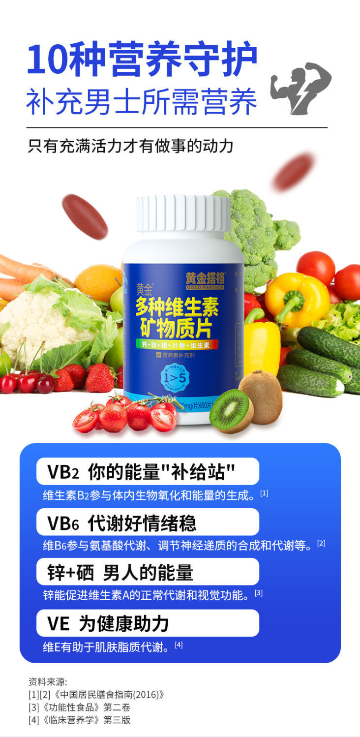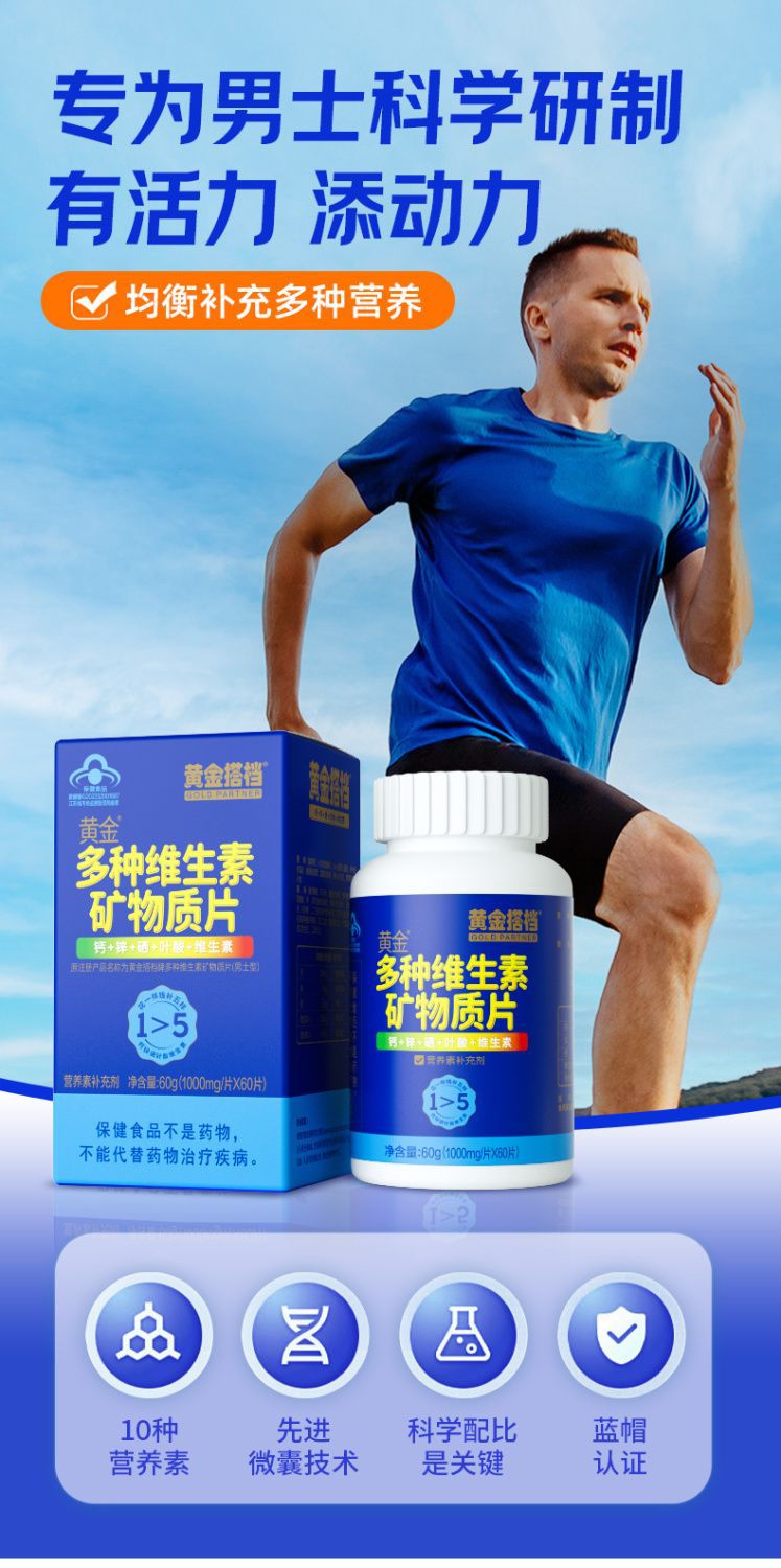 黄金搭档男士中老年补充多种维生素矿物钙铁锌硒复合型60片装
