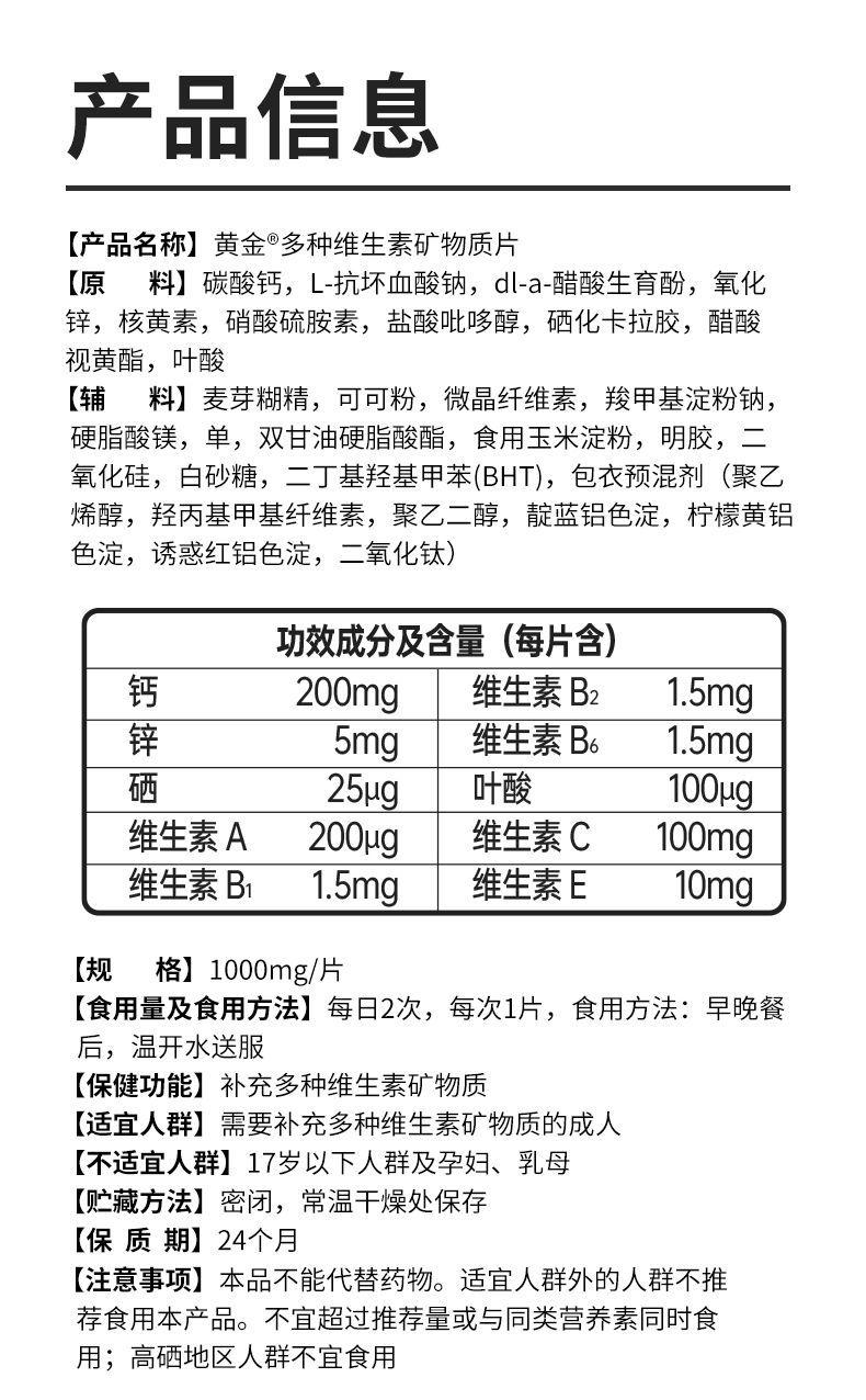 黄金搭档多种维生素矿物质片黄金破壁灵芝孢子粉胶囊线上礼盒批